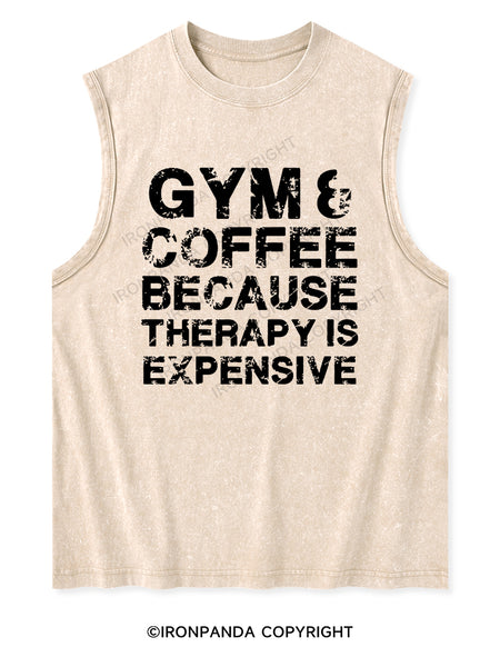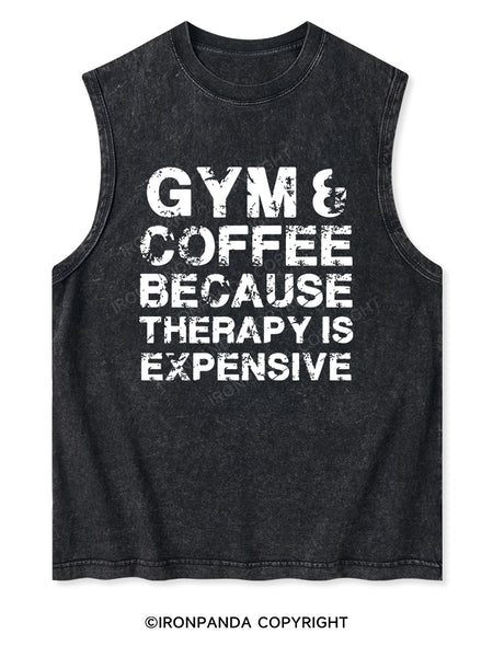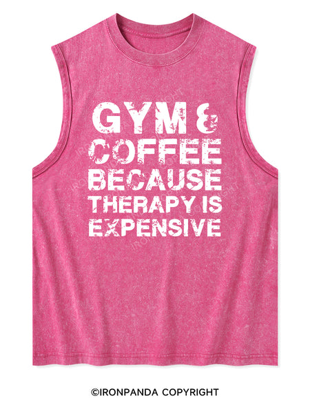 GYM&COFFEE BECAUSE THERAPY IS EXPENSIVE Washed Tank