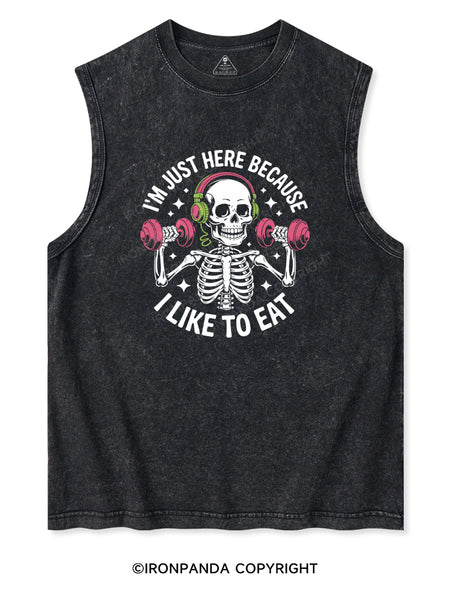 I'M JUST HERE BECAUSE I LIKE TO EAT Washed Tank