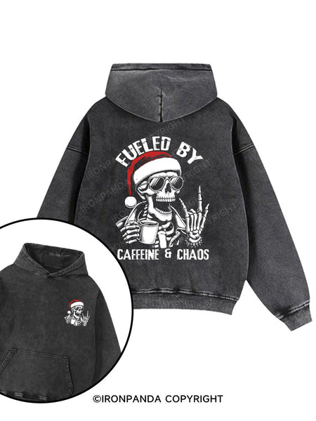 Fueled by Caffeine & Chaos Printed Washed Gym Hoodie