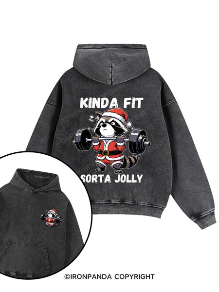 KINDA FIT SORTA JOLLYPrinted Washed Gym Hoodie