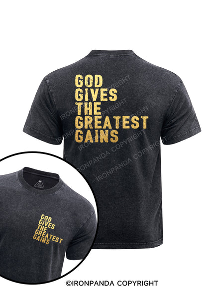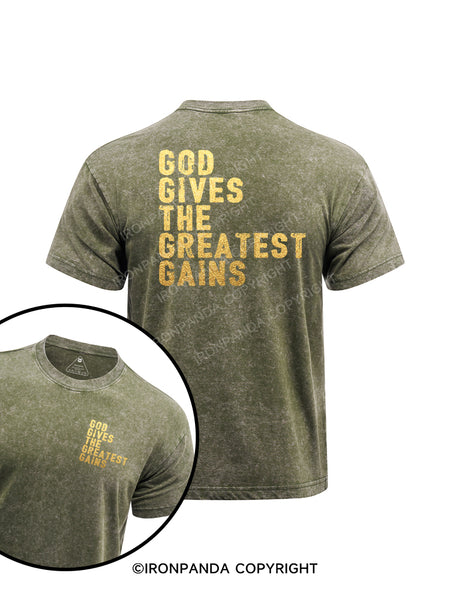 GOD GIVES THE GREATEST GAINS printed Washed Gym Shirt