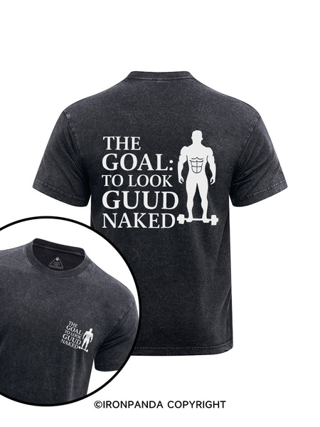 THE GOAL: TO LOOK GUUD NAKED printed Washed Gym Shirt