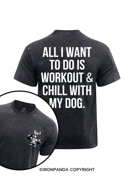 All I Want To Do Is Workout & Chill With My Dog printed Washed Gym Shirt