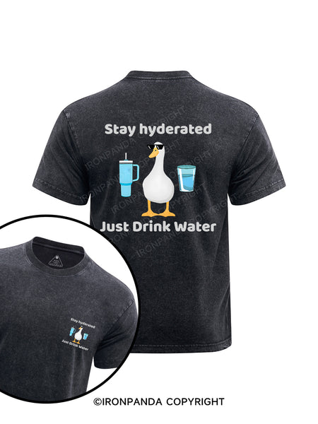 Stay hydrated Just Drink Water printed Washed Gym Shirt