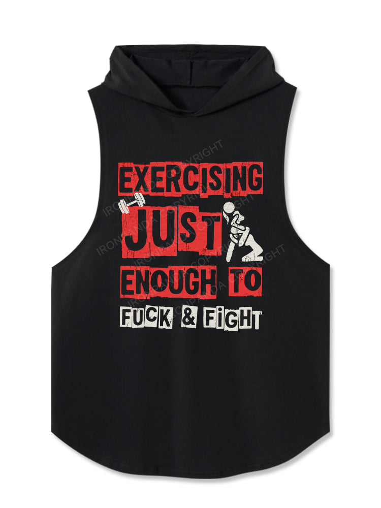 EXERCISING JUST ENOUGH TO FUCK & FIGHT Hooded Tank