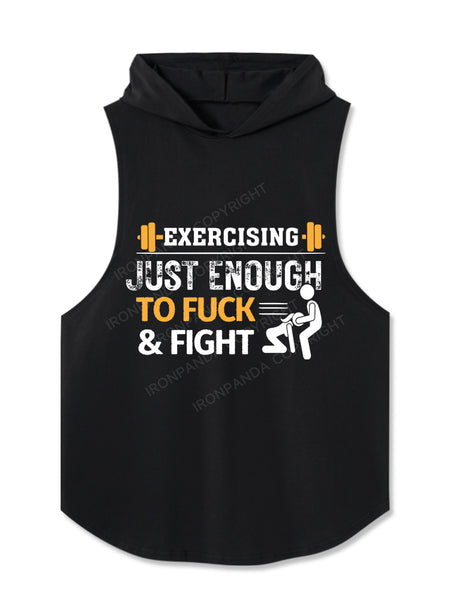 EXERCISING JUST ENOUGH TO FUCK & FIGHT Hooded Tank