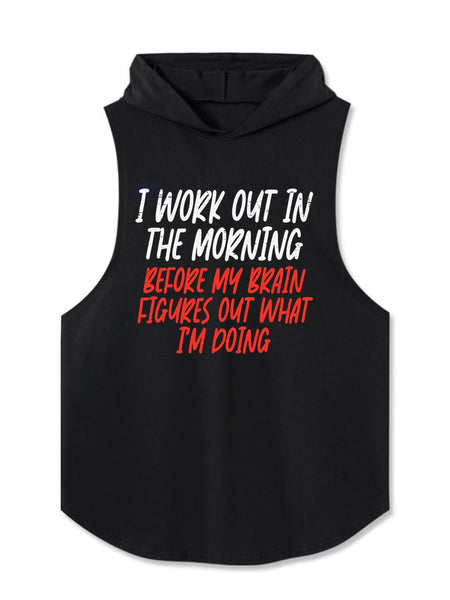 I work out in the morning before my brain figures out what I’m doing Hooded Tank
