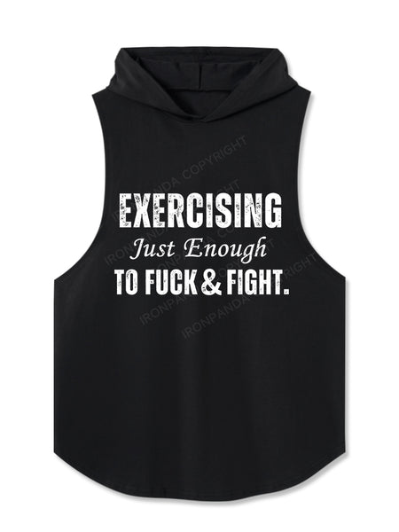 EXERCISING JUST ENOUGH TO FUCK & FIGHT Hooded Tank