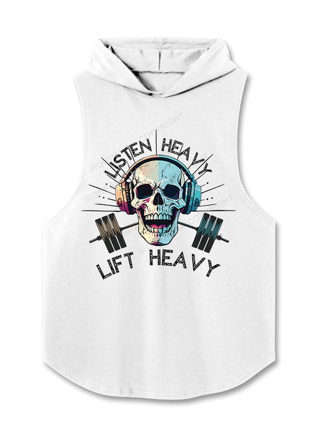 Listen Heavy Lift Heavy Skull Workout Hooded Tank