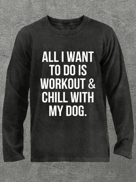 workout and chill with my dog Washed Gym Long Sleeve Shirt