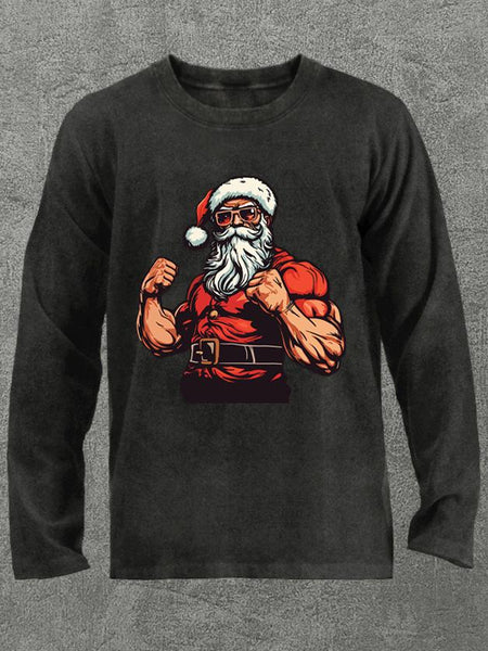 muscle santa claus Washed Gym Long Sleeve Shirt