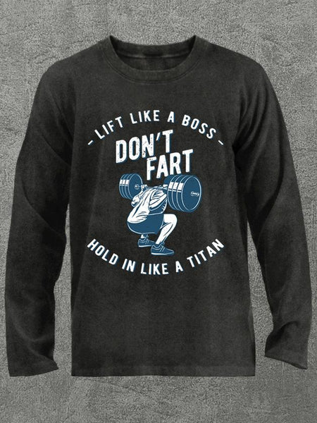 lift like a boss don't fart Washed Gym Long Sleeve Shirt