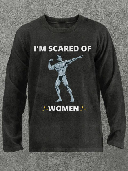 I'm Scared of Women Washed Gym Long Sleeve Shirt