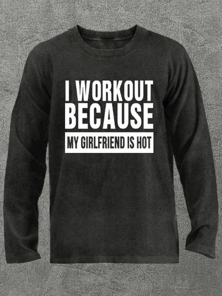 I Workout Because My Girlfriend is Hot Washed Gym Long Sleeve Shirt