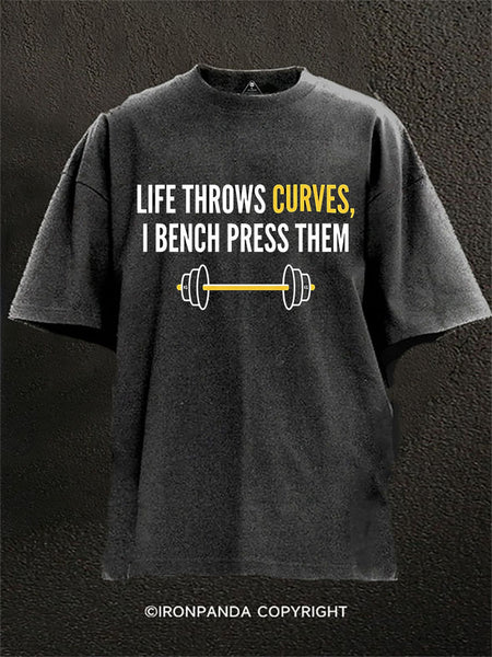 Life Throws Curves I Bench Press Them Washed Gym Shirt
