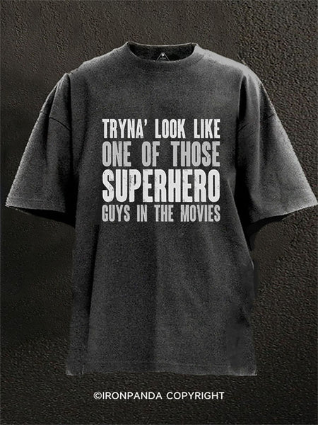 TRYNA’ LOOK LIKE ONE OF THOSE SUPERHERO GUYS IN THE MOVIES Washed Gym Shirt