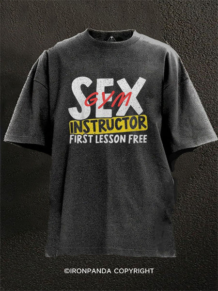 GYM INSTRUCTOR FIRST LESSON FREE Washed Gym Shirt