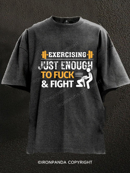 EXERCISING JUST ENOUGH TO FUCK & FIGHT Washed Gym Shirt