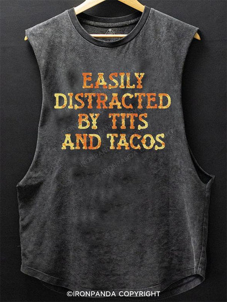 Easily Distracted Tits And Tacos SCOOP BOTTOM COTTON TANK