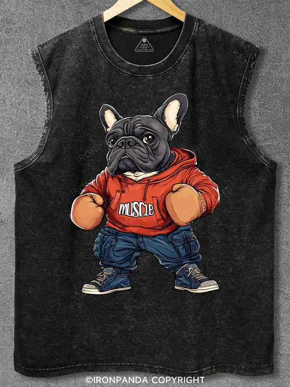 Muscular French bulldog Washed Gym Tank