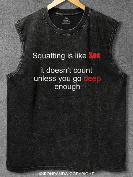 Squatting is like sex Washed Gym Tank