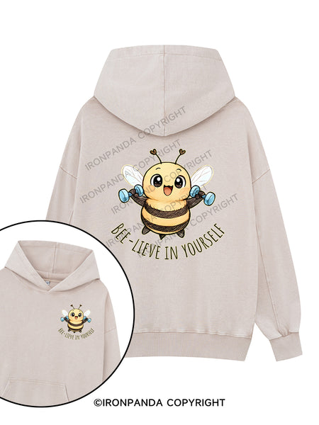 BEE-LIEVE IN YOURSELF Printed Washed Gym Hoodie