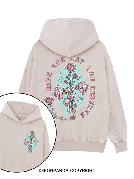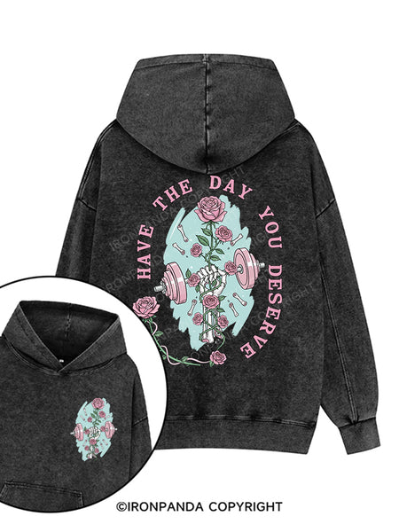 HAVE THE DAY YOU DESERVE Printed Washed Gym Hoodie