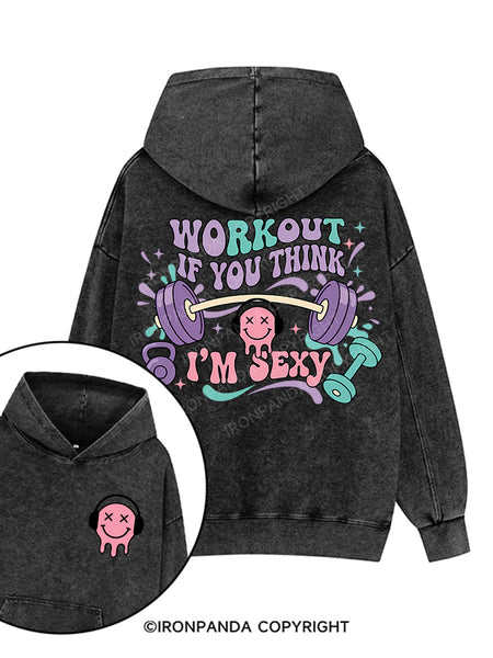 Workout If You Think I'm Sexy Printed Washed Gym Hoodie