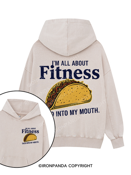 i'm all about fitness taco into my mouth Printed Washed Gym Hoodie