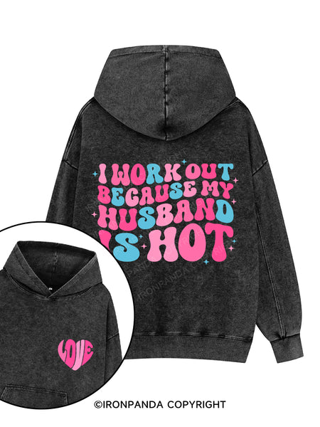 I Work Out Because My Husband is Hot Printed Washed Gym Hoodie