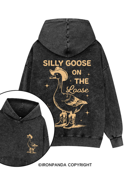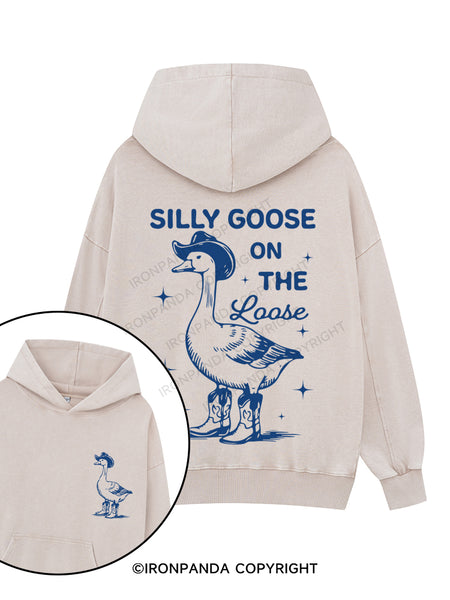 SILLY GOOSE ON THE LOOSE Printed Washed Gym Hoodie