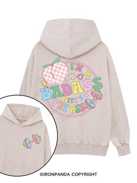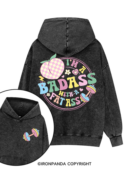 I'M A BADASS WITH A FAT ASS Printed Washed Gym Hoodie