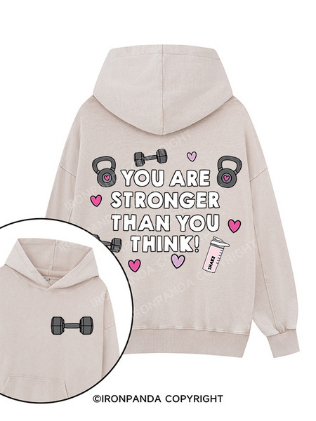 YOU ARE STRONGER THAN YOU THINK Printed Washed Gym Hoodie
