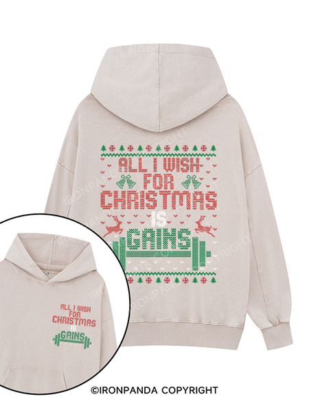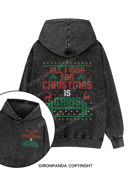 ALL I WISH FOR CHRISTMAS IS GAINS Printed Washed Gym Hoodie