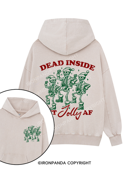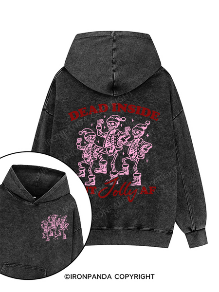 DEAD INSIDE BUT JOLLY AF Printed Washed Gym Hoodie