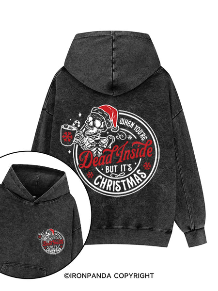 WHEN YOU'RE DEAD INSIDE BUT IT'S CHRISTMAS Printed Washed Gym Hoodie