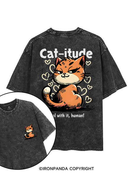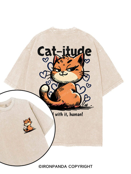 CAT-ITUDE DEAL WITH IT, HUMAN! printed Gym Shirt