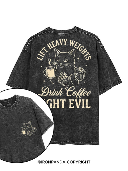 LIFT HEAVY WEIGHTS DRINK COFFEE FIGHT EVIL printed Gym Shirt