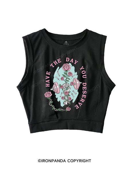 HAVE THE DAY YOU DESERVE SLEEVELESS CROP TOPS