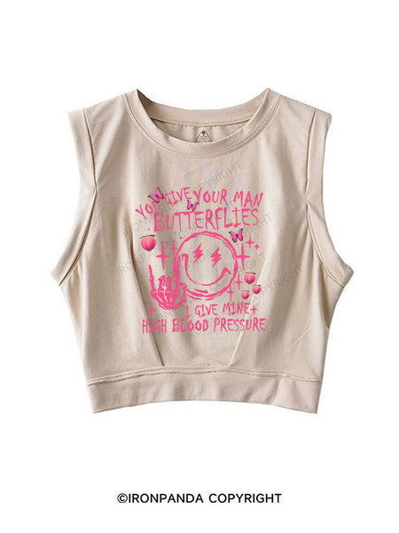 You Give Your Man Butterflies I give Mine High Blood Pressure SLEEVELESS CROP TOPS