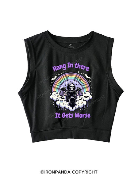 HANG IN THERE IT GETS WORSE SLEEVELESS CROP TOPS
