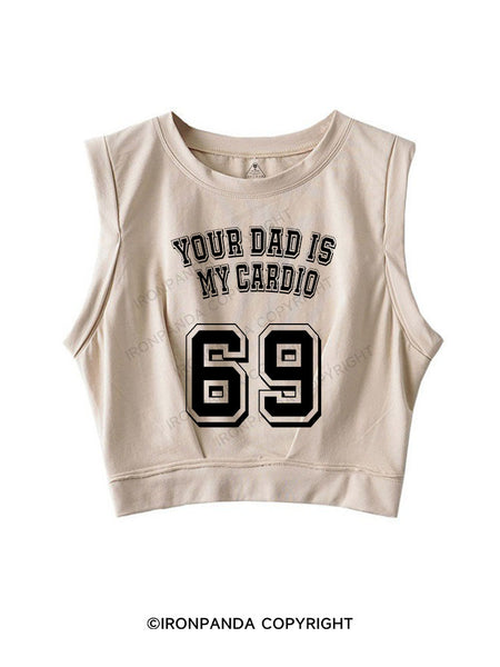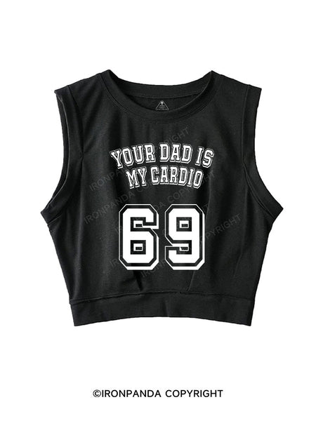 YOUR DAD IS MY CARDIO SLEEVELESS CROP TOPS