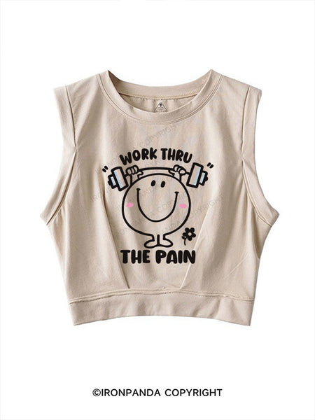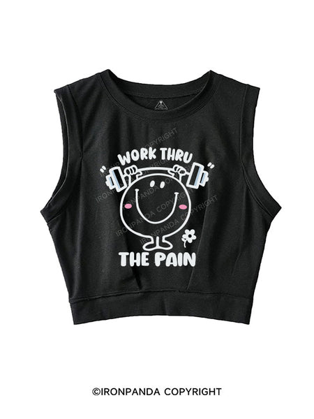 WORK THRU THE PAIN SLEEVELESS CROP TOPS
