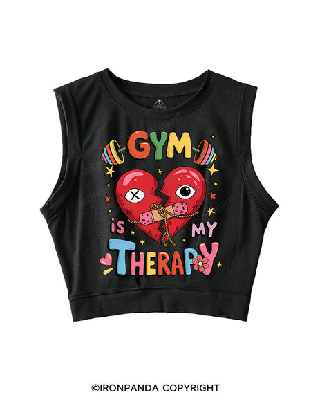 GYM IS MY THERAPY SLEEVELESS CROP TOPS