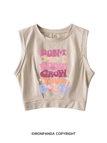 DON'T BE MOODY GROW YOUR BOOTY SLEEVELESS CROP TOPS