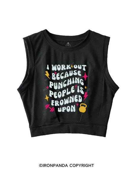 I WORKOUT BECAUSE PUNCHING PEOPLE IS FROWNED UPON SLEEVELESS CROP TOPS