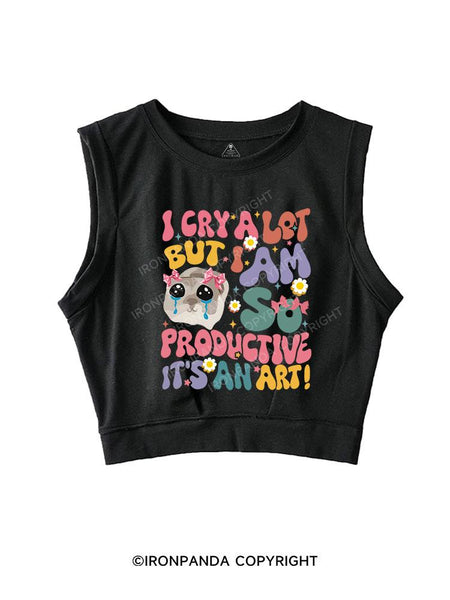 I CRY A LOT BUT I AM SO PRODUCTIVE IT'S AN ART SLEEVELESS CROP TOPS