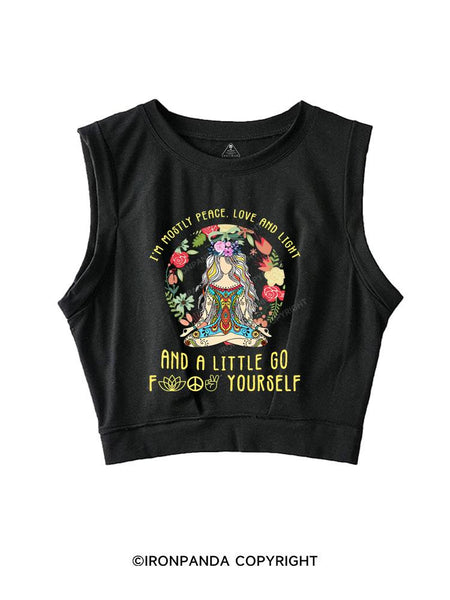 I'M MOSTLY PEACE LOVE AND LIGHT AND A LITTLE GO FUCK YOURSELF SLEEVELESS CROP TOPS