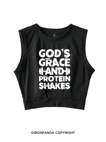 GOD'S GRACE AND PROTEIN SHAKE SLEEVELESS CROP TOPS