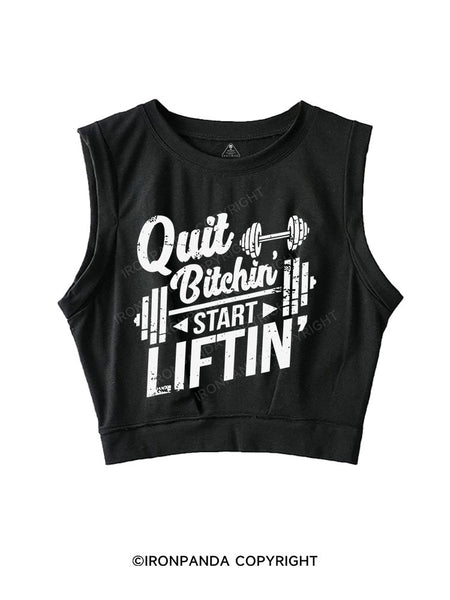 QUIT BITCHIN START LIFTIN SLEEVELESS CROP TOPS